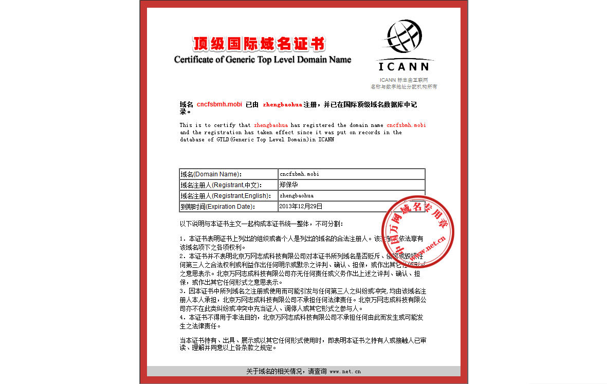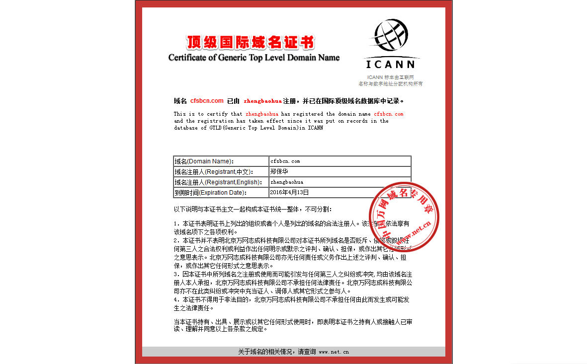 顶级域名 资证