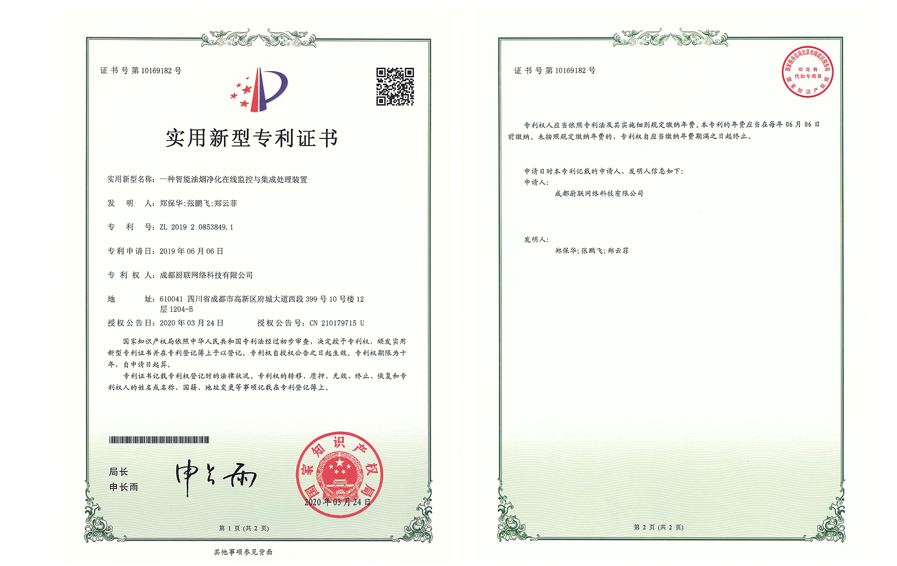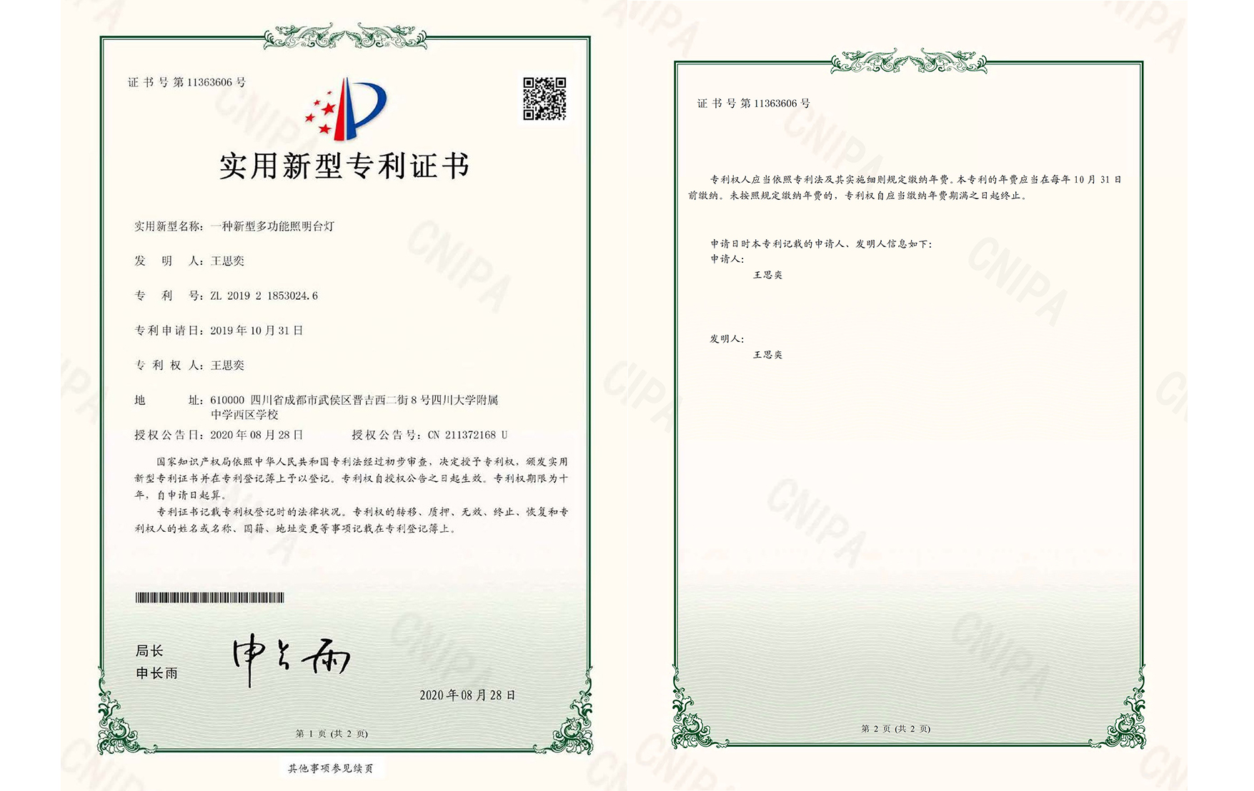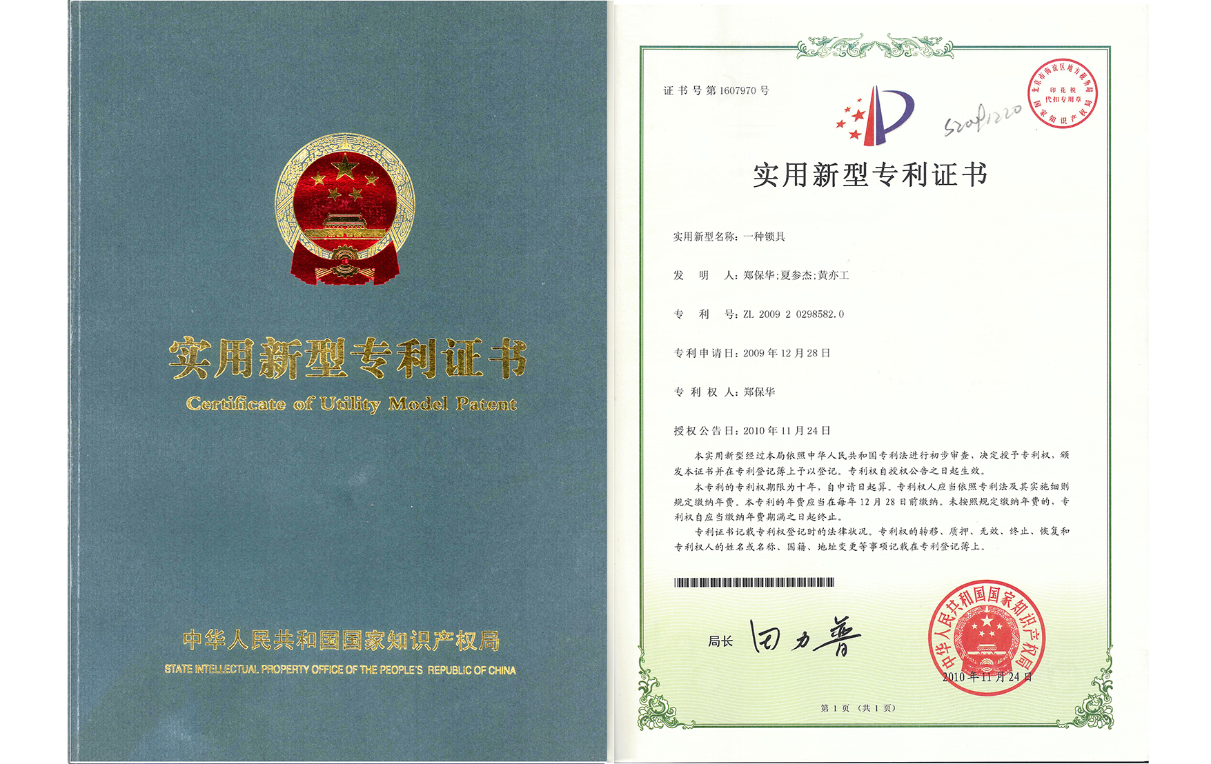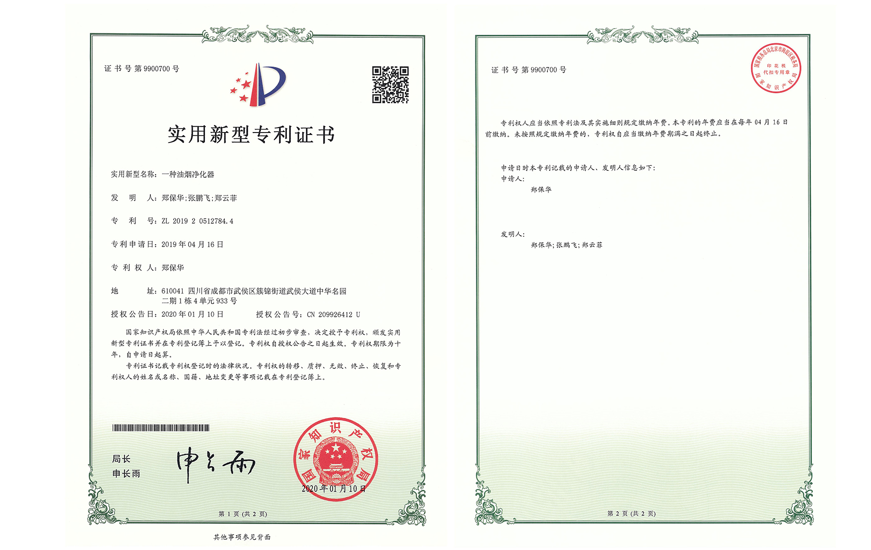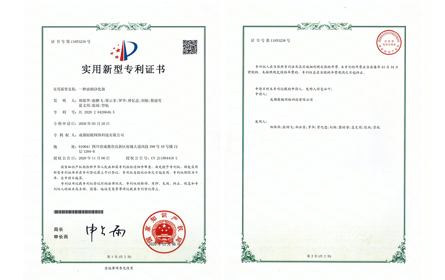 国家知识产权局 专利证 2020年