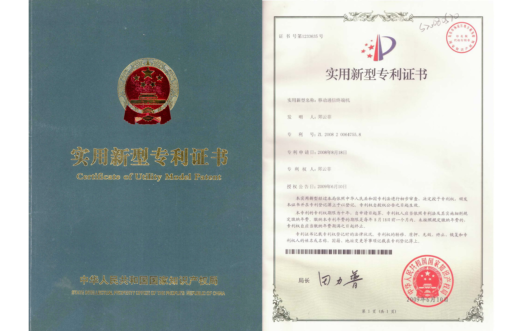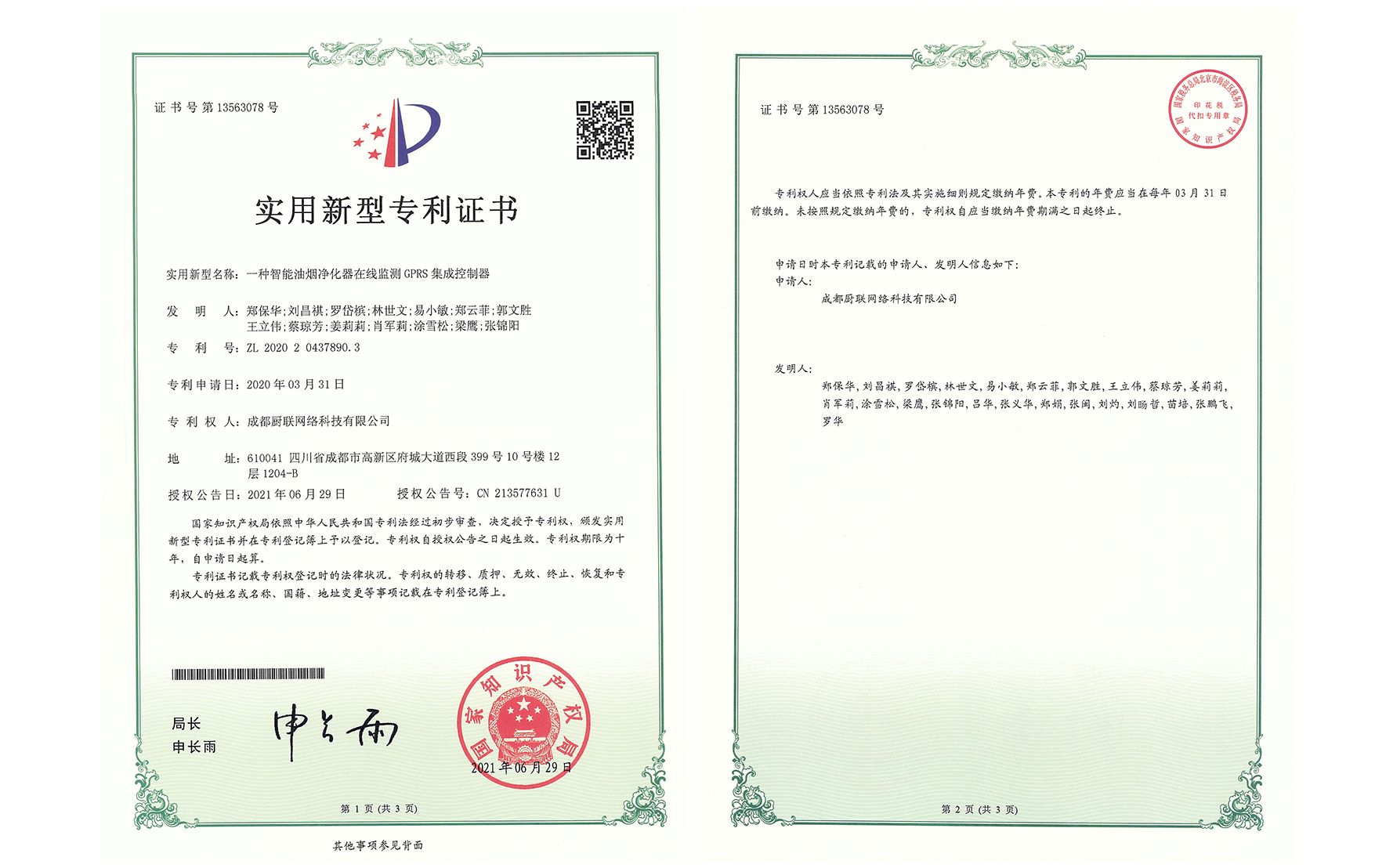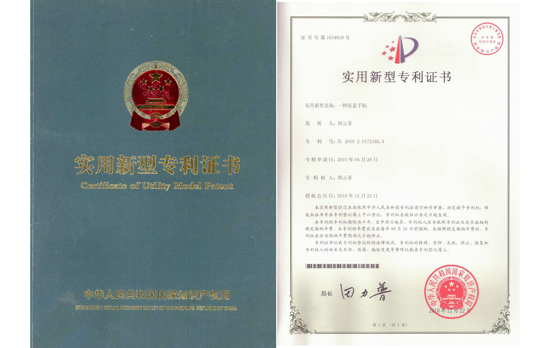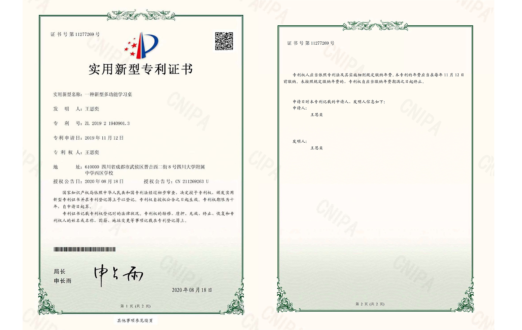 国家知识产权局 专利证 2021年 2022年 帮助专利 合作专利 关心下一代